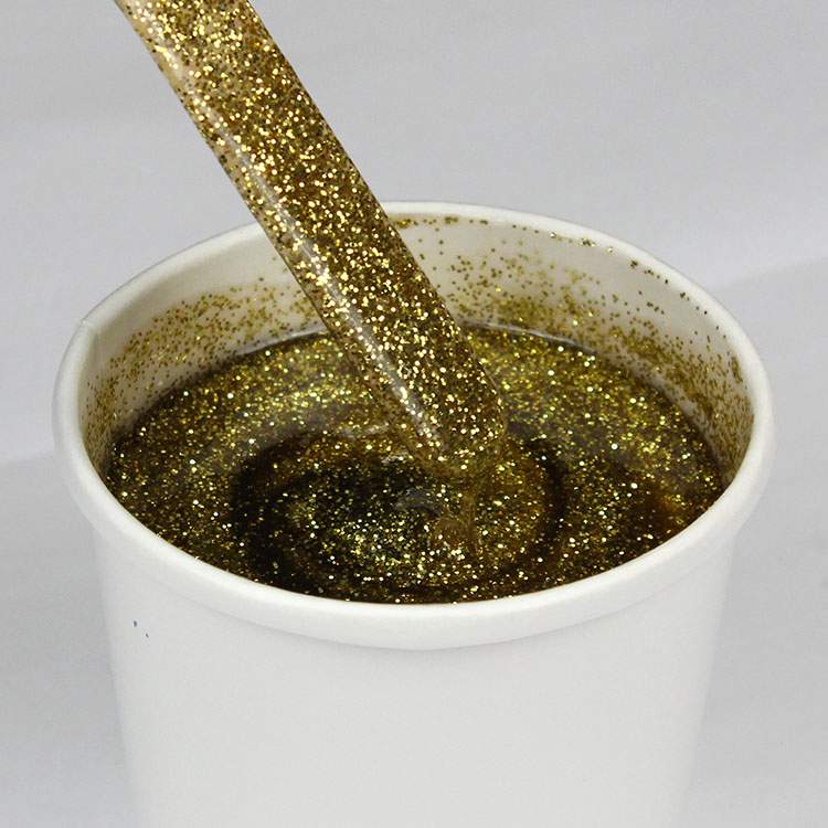 Glitterflake should be mixed thoroughly with clear gel coat no more than one hour before it is to be applied. It is generally added at 10% by weight, but may be increased up to 20%. Adding more than 20% can cause curing problems including a distortion or ripple in the surface.