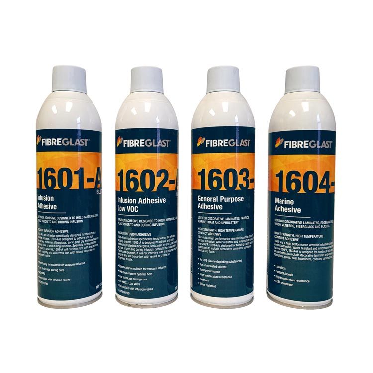 1602-A LVOC Infusion Adhesive is a specialty industrial spray adhesive specifically designed for the infusion molding process that meets the most strict VOC regulations. 1602-A is designed to adhere and hold reinforcing fiberglass materials (mats, pads, strips) in place prior to and during resin infusion. Specifically formulated for the infusion process, it will not interfere with the polymer matrix integrity and will cross-link with resins to create an integrated matrix.