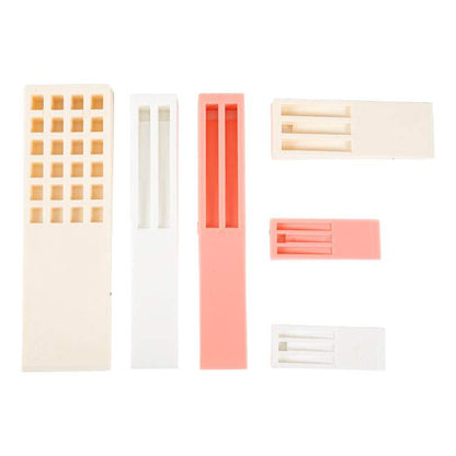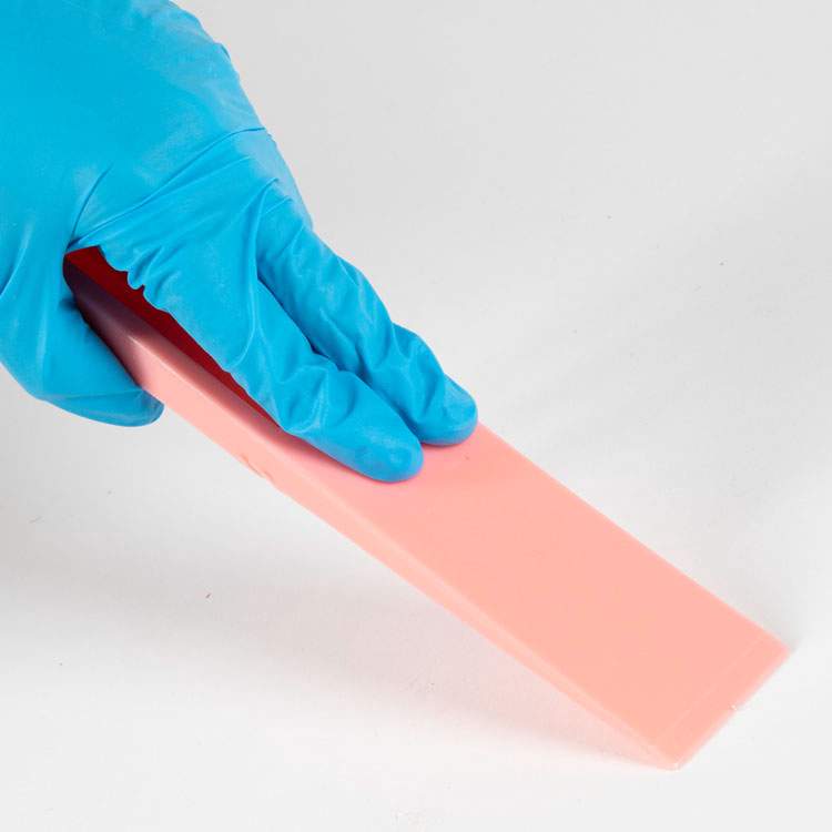 Wedges are made of soft polyethylene, so as to not damage the mold or the part. White wedges are more rigid in nature, the pink are slightly more flexible.